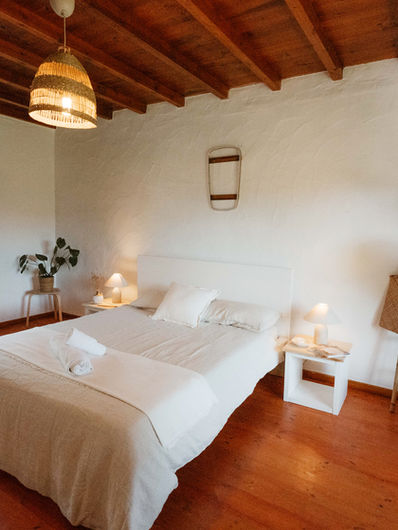 This rustic yet modern house has a unique charm. The living room is bright and airy, with natural light flooding in. The spacious kitchen and dining area feel warm and welcoming. The old stone walls, wooden floors, and blue window shutters capture the charm of Portugal.